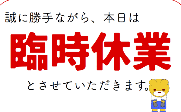 29日(水)臨時休業です